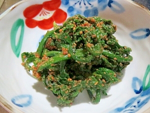 レシピ レンジで簡単副菜 春菊 菊菜 のエビ塩麹和え Mi Rin S みーりんず
